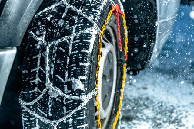 チェーン規制区間を走行するときだけではなく、大雪が予想される時もスタッドレスタイヤに加えてチェーンも準備しておくと安全性が高まります。